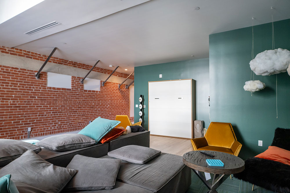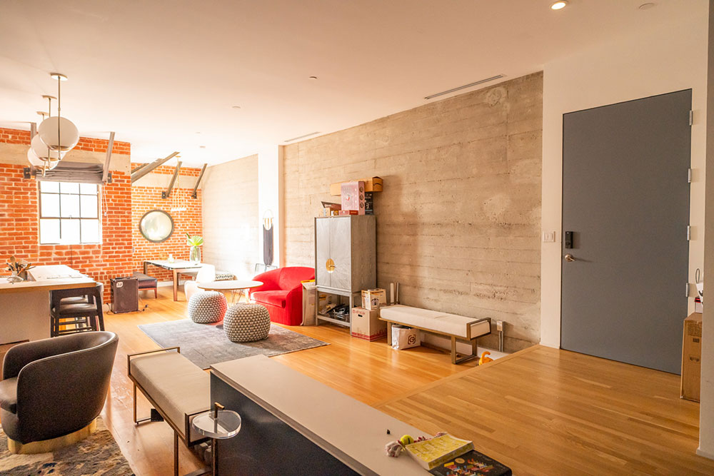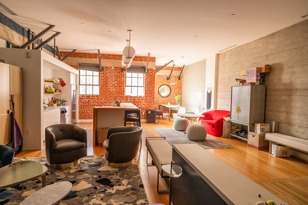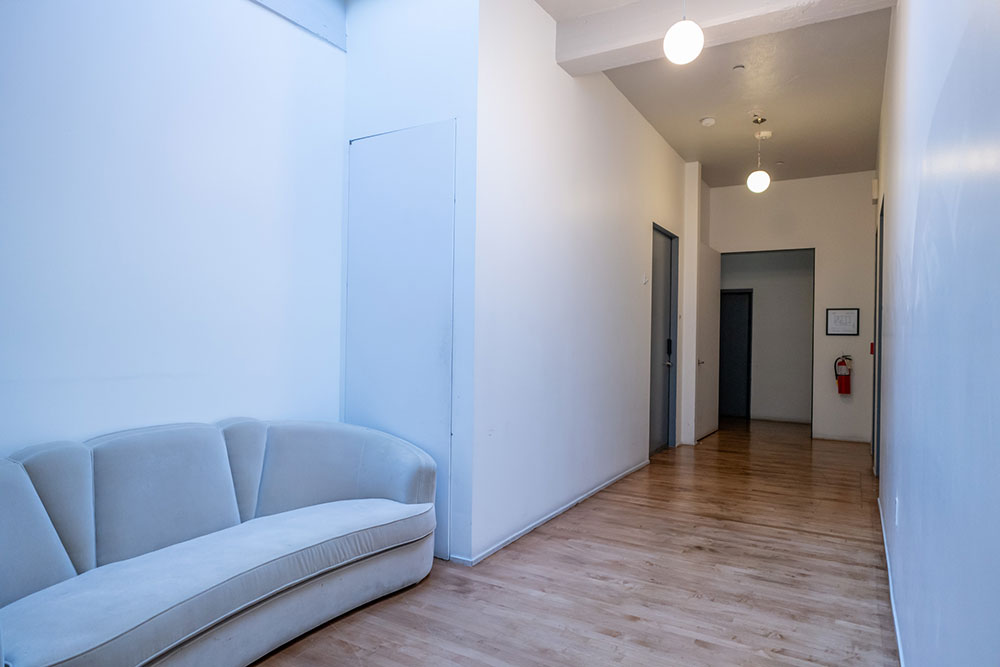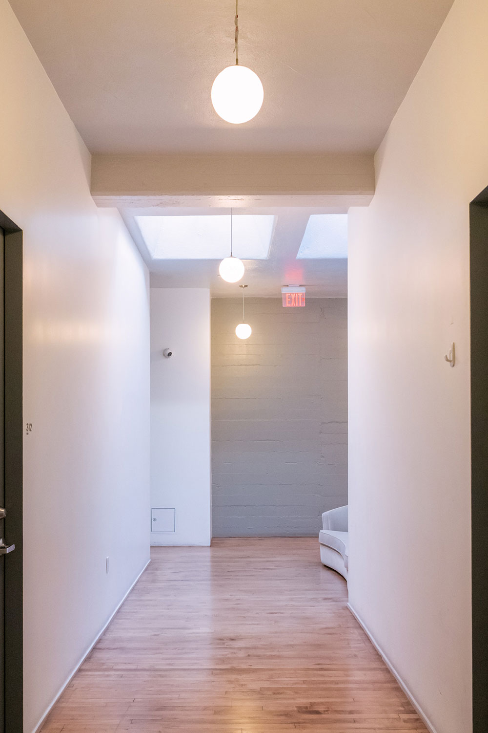 This loft can cheat any city living space in places like the very trendy Williamsburg area of Brooklyn, DTLA or San Francisco. Or any other urban area where you would find a modern loft with one wall of exposed brick and way too high rent! It is fully equipped and furnished. The hallway leading to this space has white and gray painted cement blocks and steel loft doors.