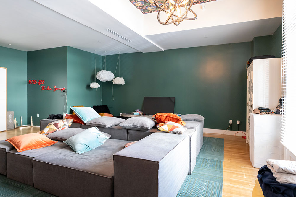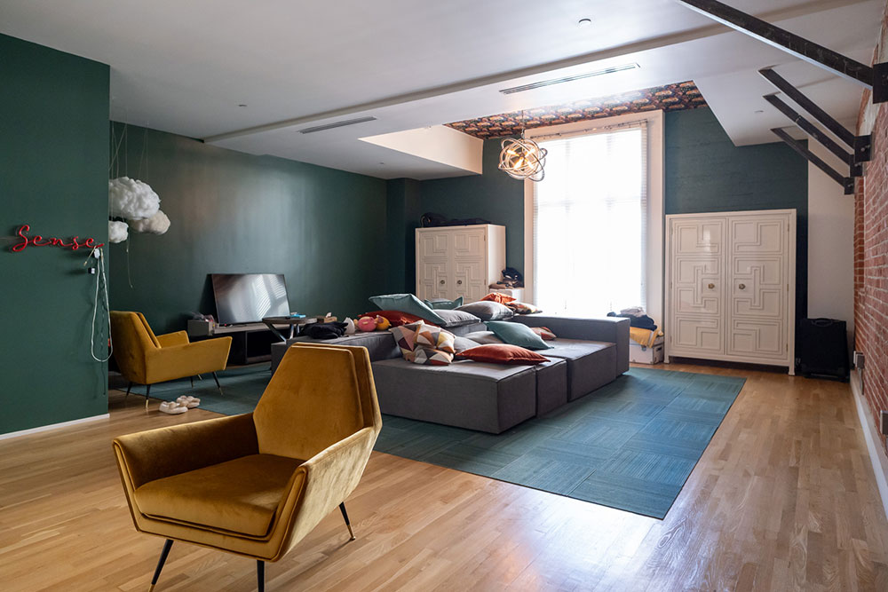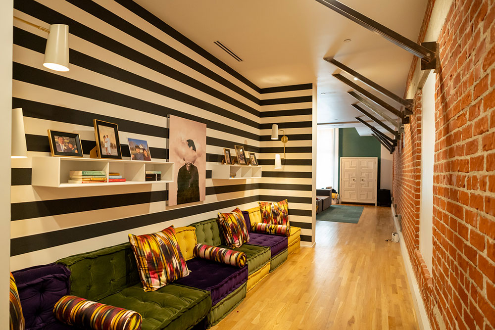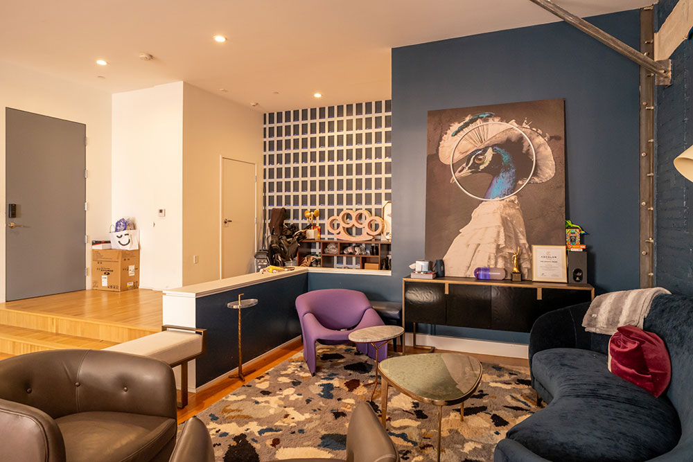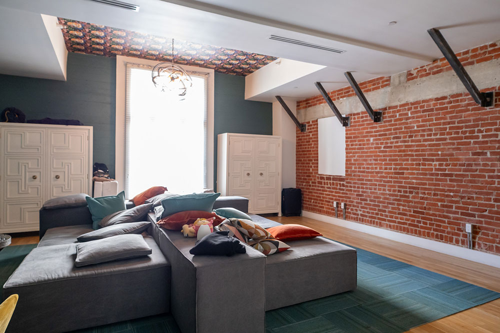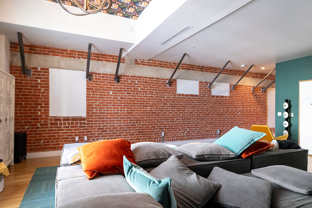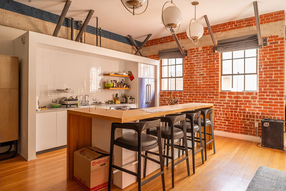 This loft can cheat any city living space in places like the very trendy Williamsburg area of Brooklyn, DTLA or San Francisco. Or any other urban area where you would find a modern loft with one wall of exposed brick and way too high rent! It is fully equipped and furnished. The hallway leading to this space has white and gray painted cement blocks and steel loft doors.