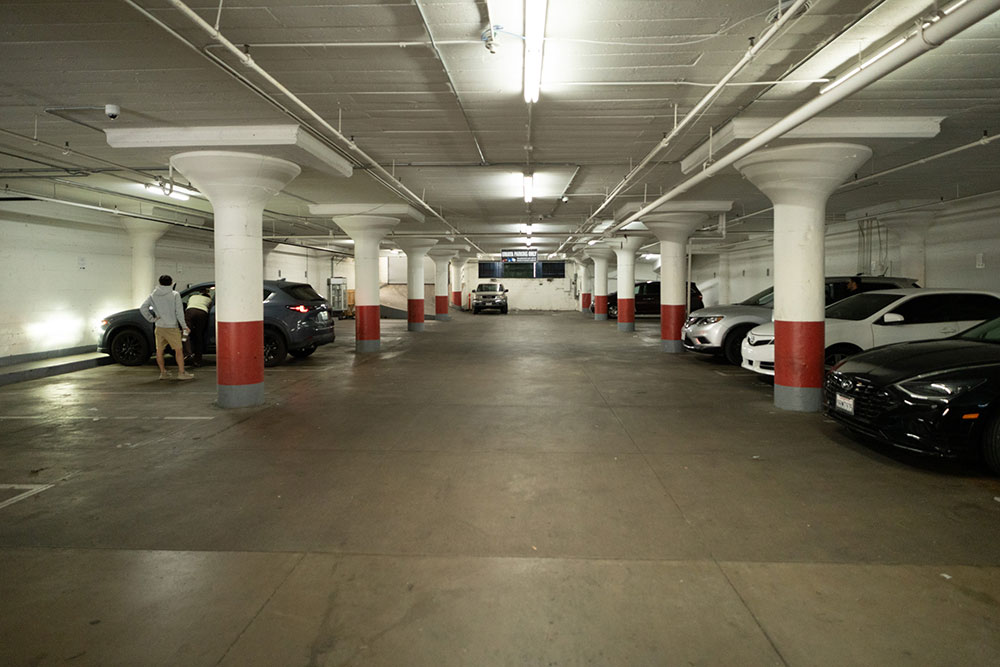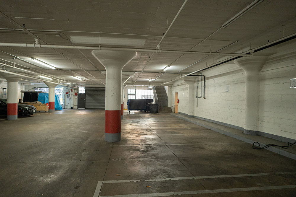 This garage is, while not very large can accommodate exiting and entering vehicle shots as well as showing another entrance into the build.